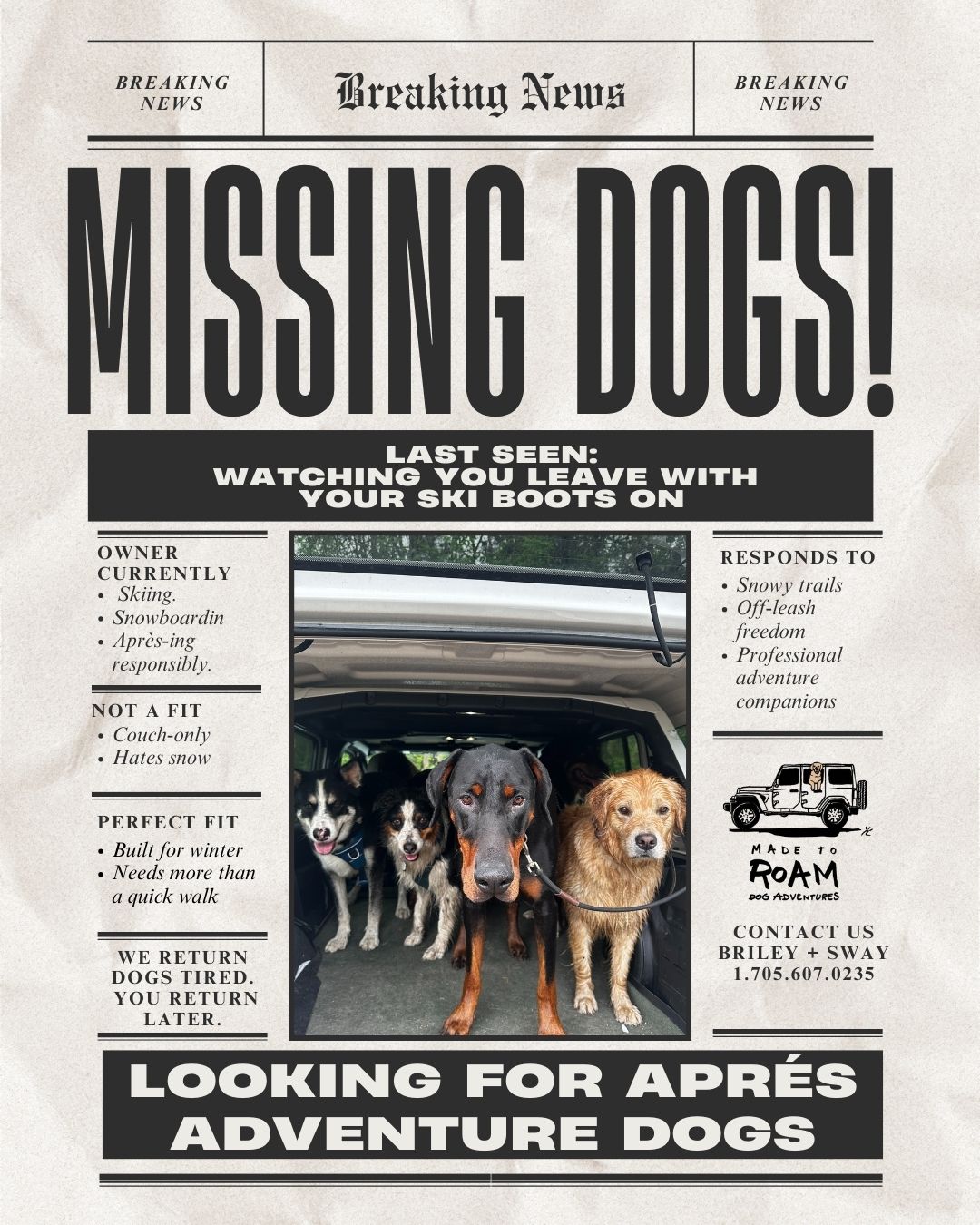 THE WEEKEND APRÈS DOG CLUB IS REAL. While you’re sipping your post-ski beverage, your dog could be living their own mountain legend with Made to Roam. What we’re serving:
