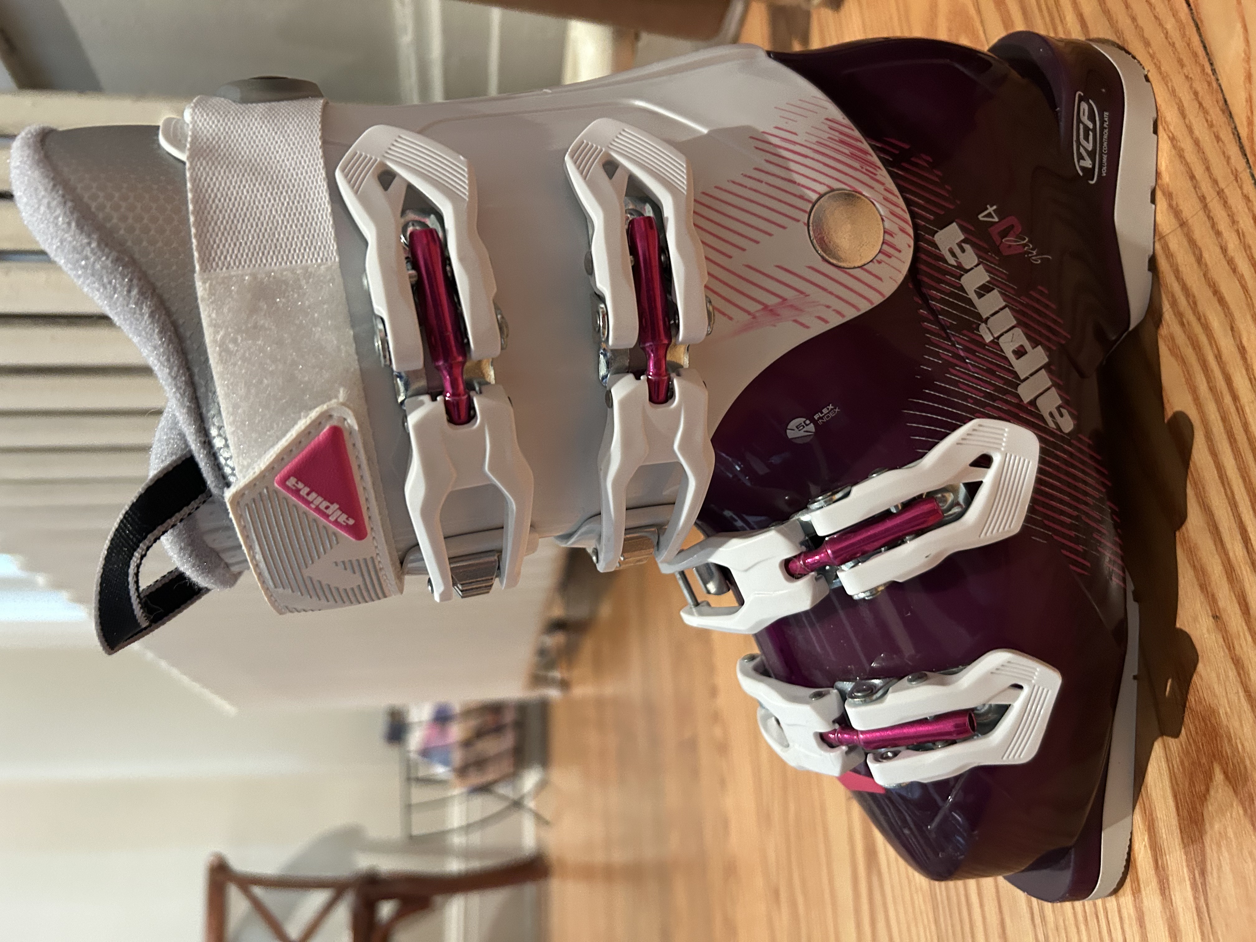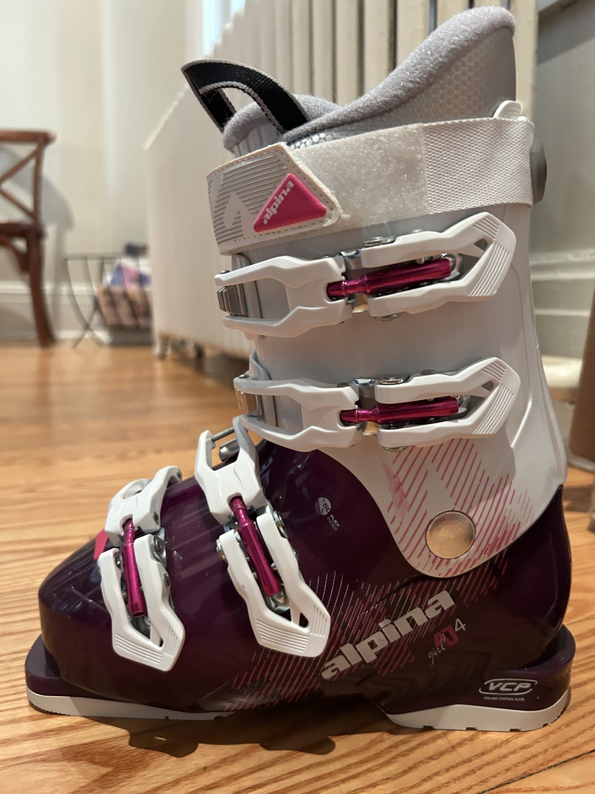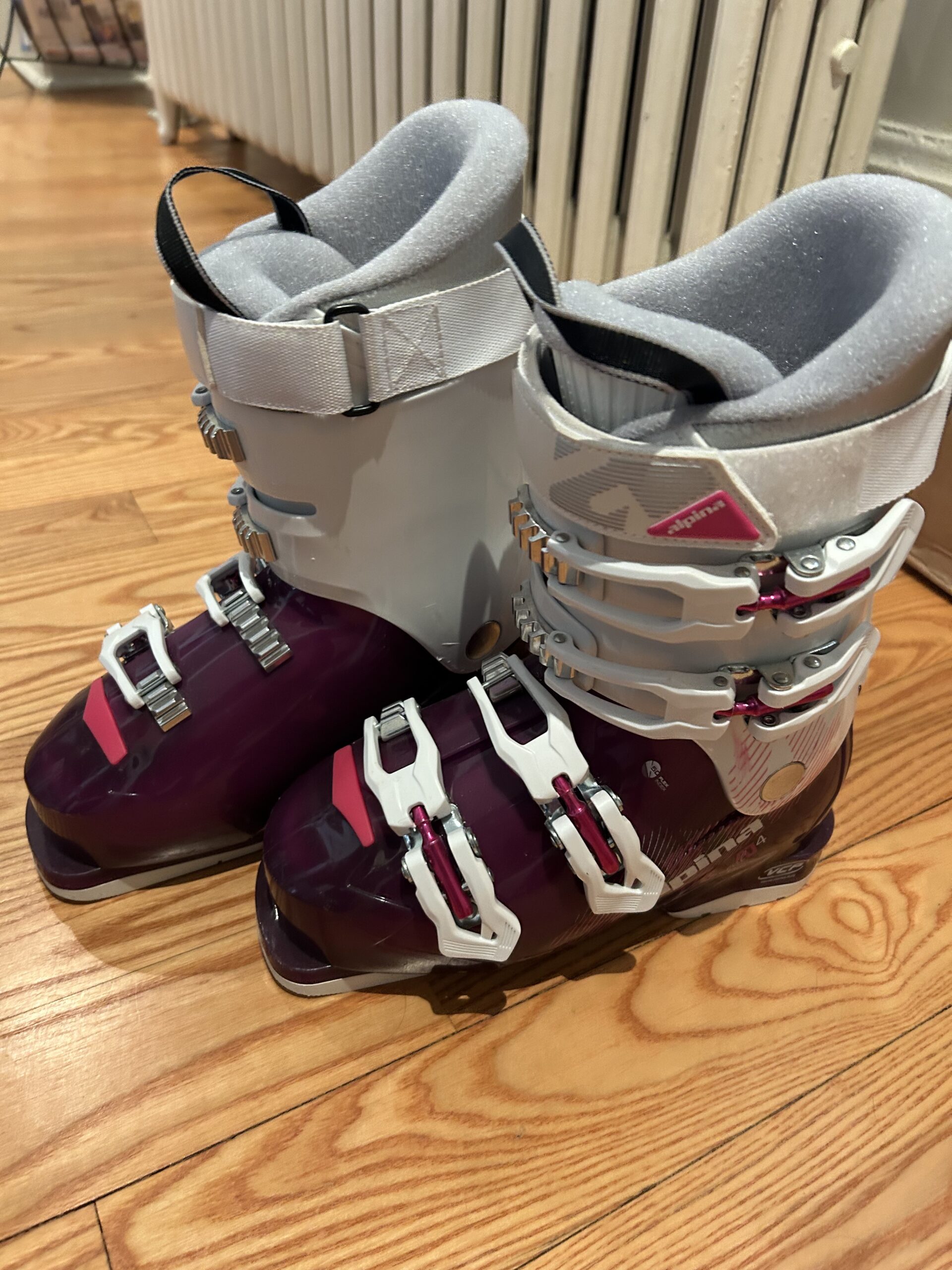 These Alpina boots are in excellent condition and were hardly worn. They are the J4 girls model and sell new for $140. Size is 22.5 (225) US Junior/Youth size 4.