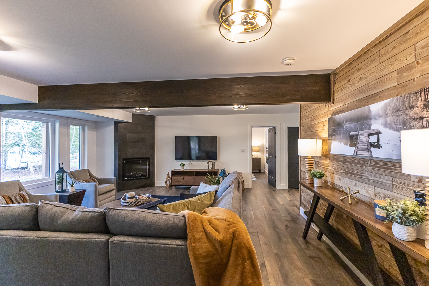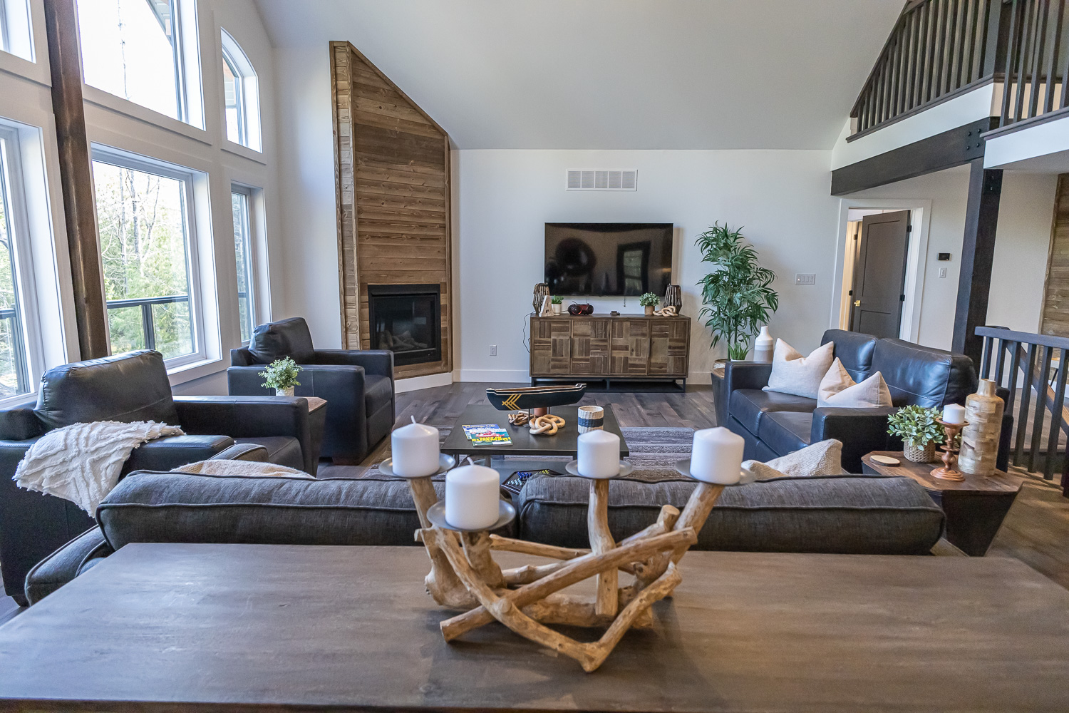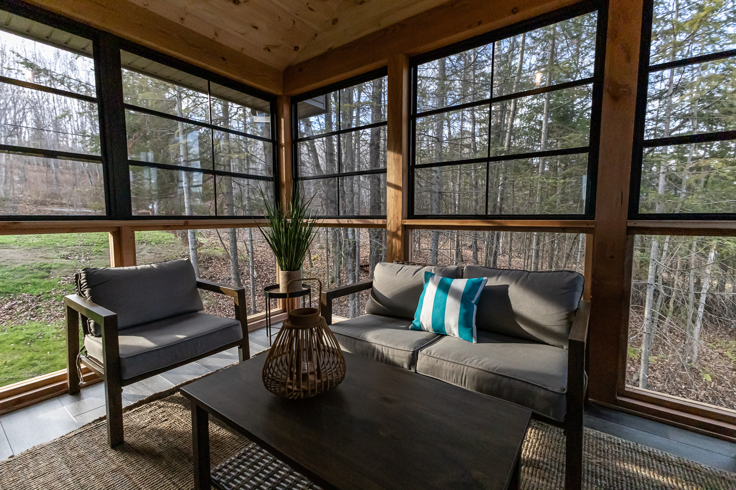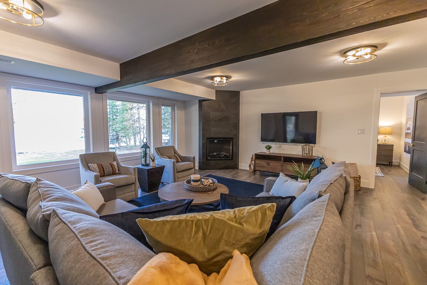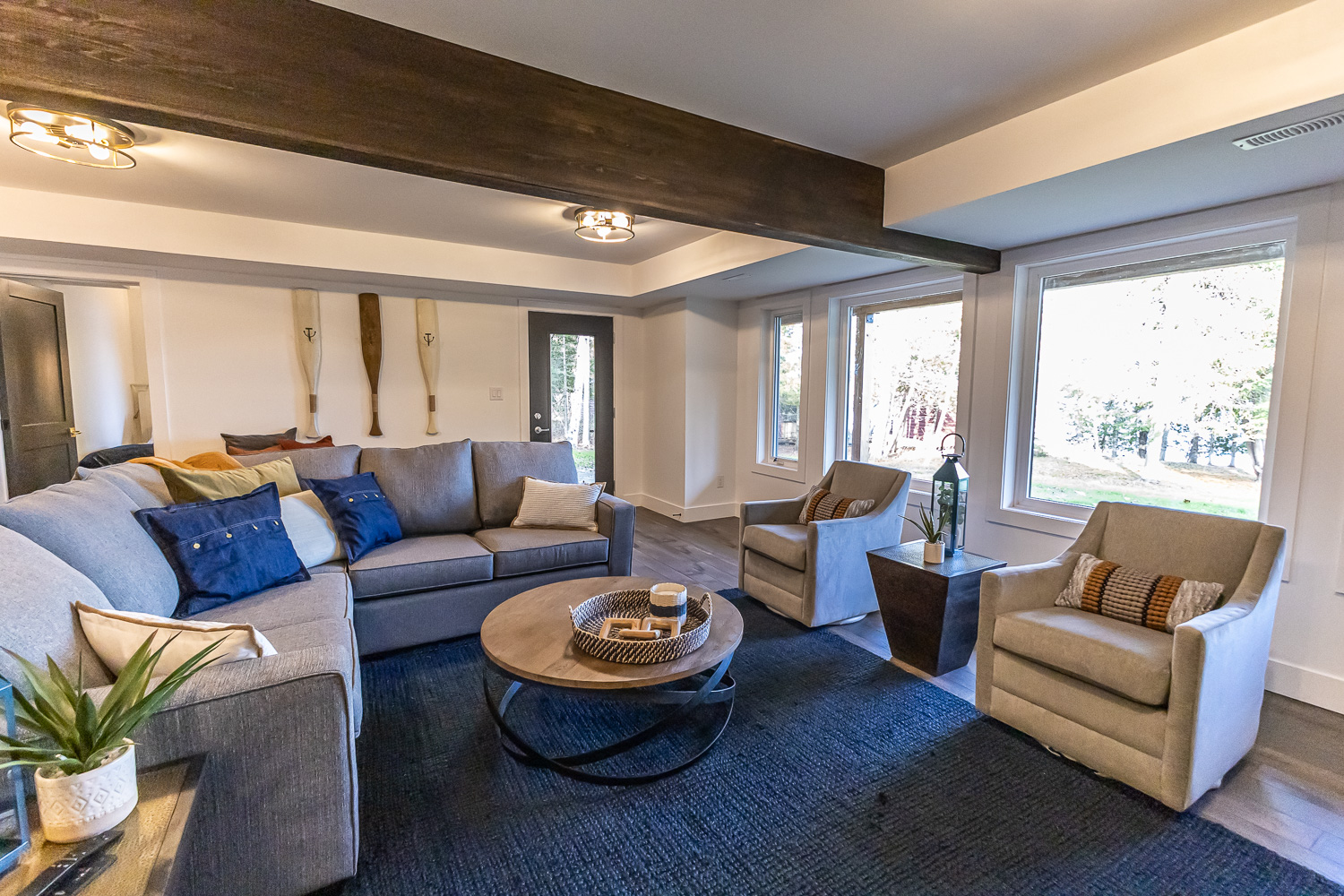 Inside, the home blends modern comfort with warm, inviting spaces. The main level is anchored by a beautifully designed kitchen, dining, and living area—ideal for gathering, entertaining, or simply unwinding after a day outdoors. A Muskoka room provides a quiet, screened-in space to enjoy morning coffee or evening sunsets, while expansive windows draw the outdoors in.