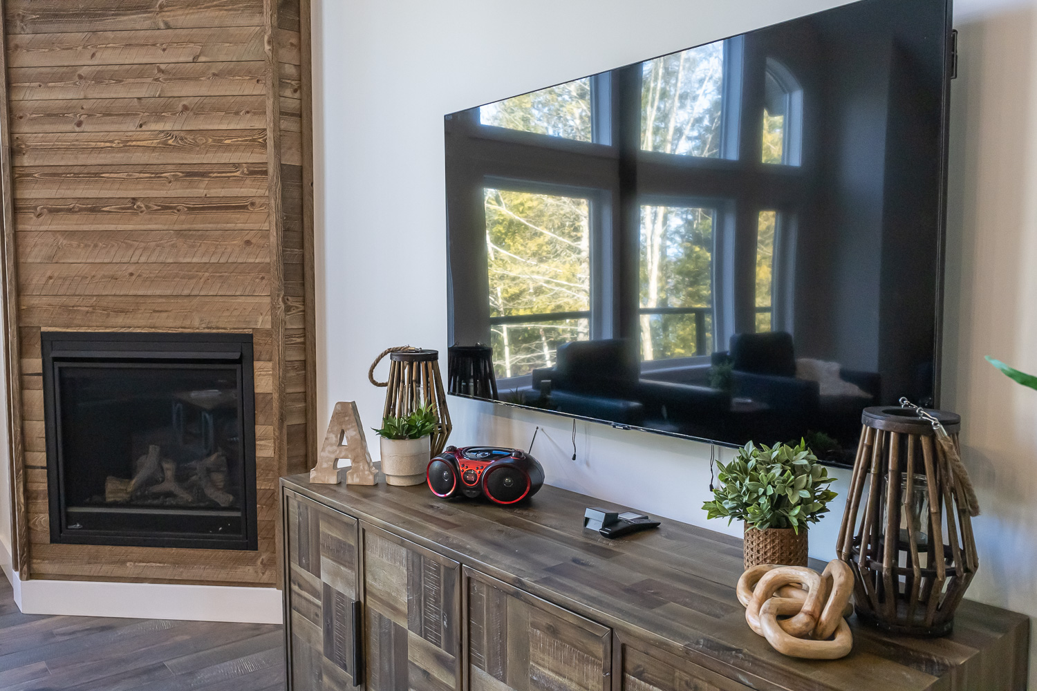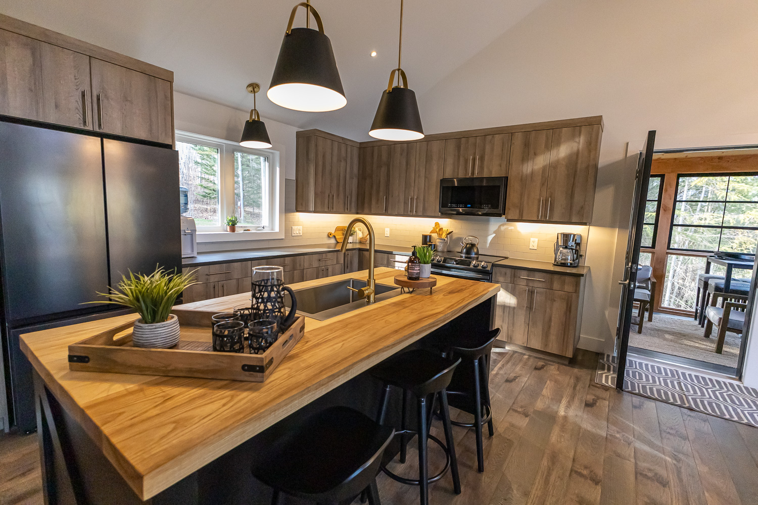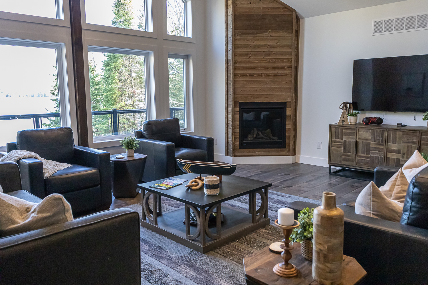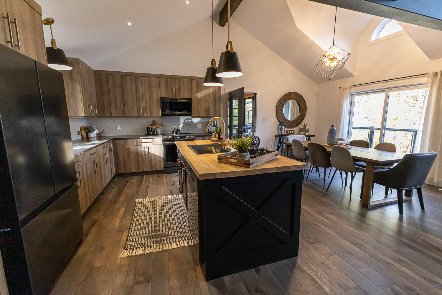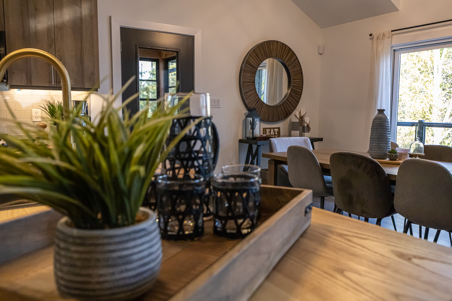 Inside, the home blends modern comfort with warm, inviting spaces. The main level is anchored by a beautifully designed kitchen, dining, and living area—ideal for gathering, entertaining, or simply unwinding after a day outdoors. A Muskoka room provides a quiet, screened-in space to enjoy morning coffee or evening sunsets, while expansive windows draw the outdoors in.