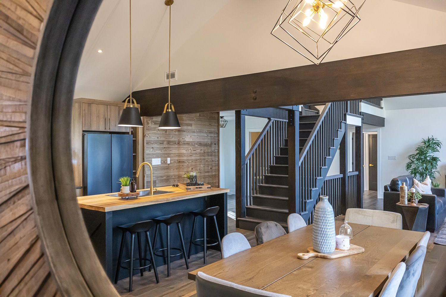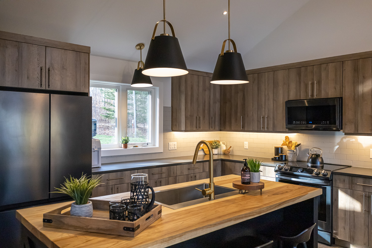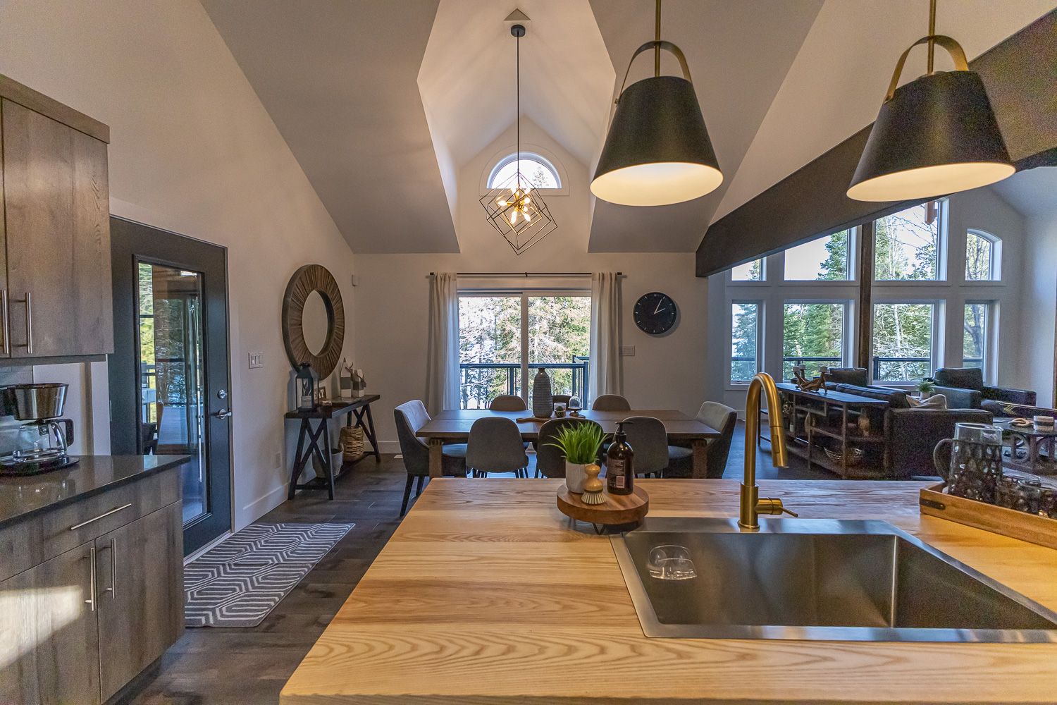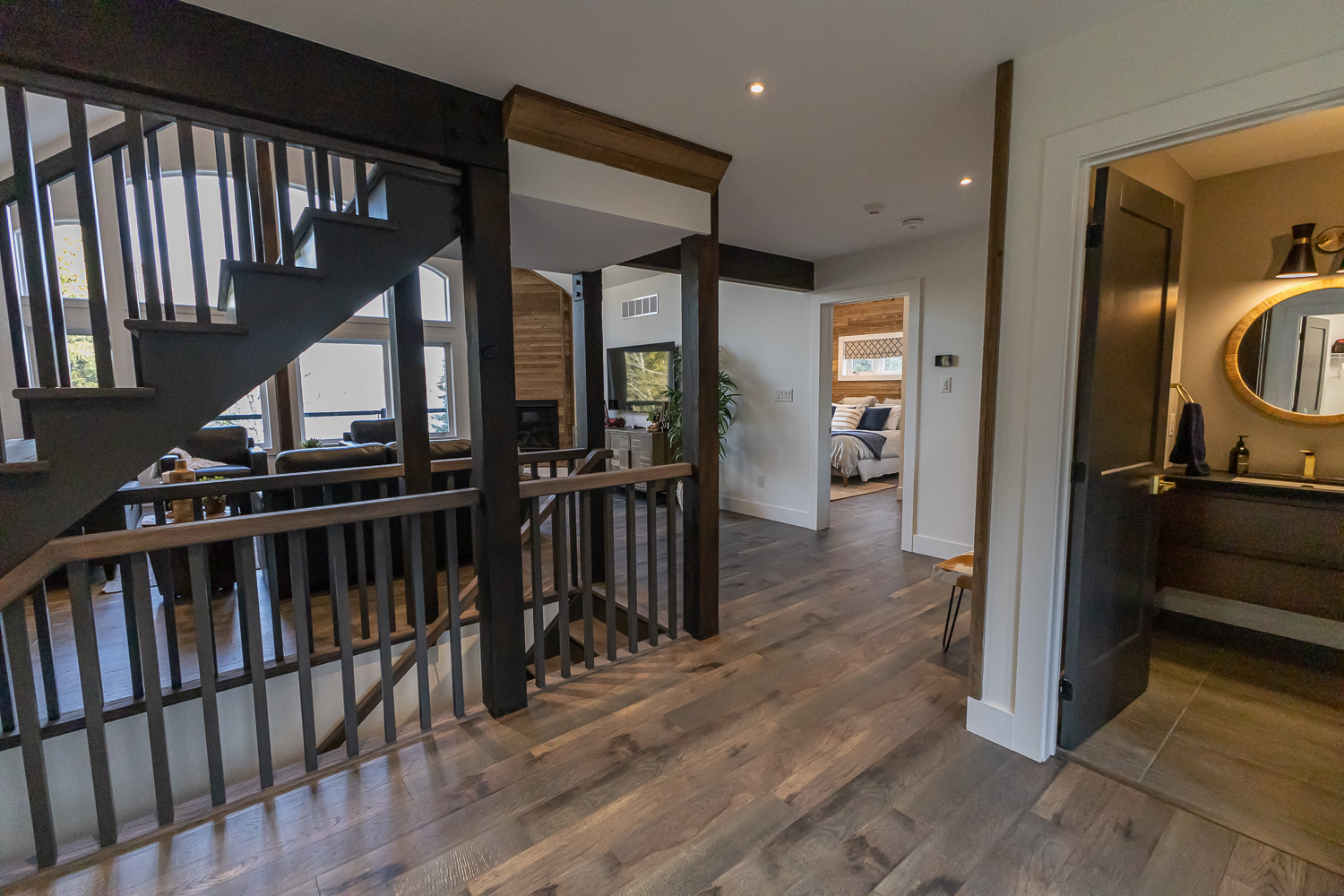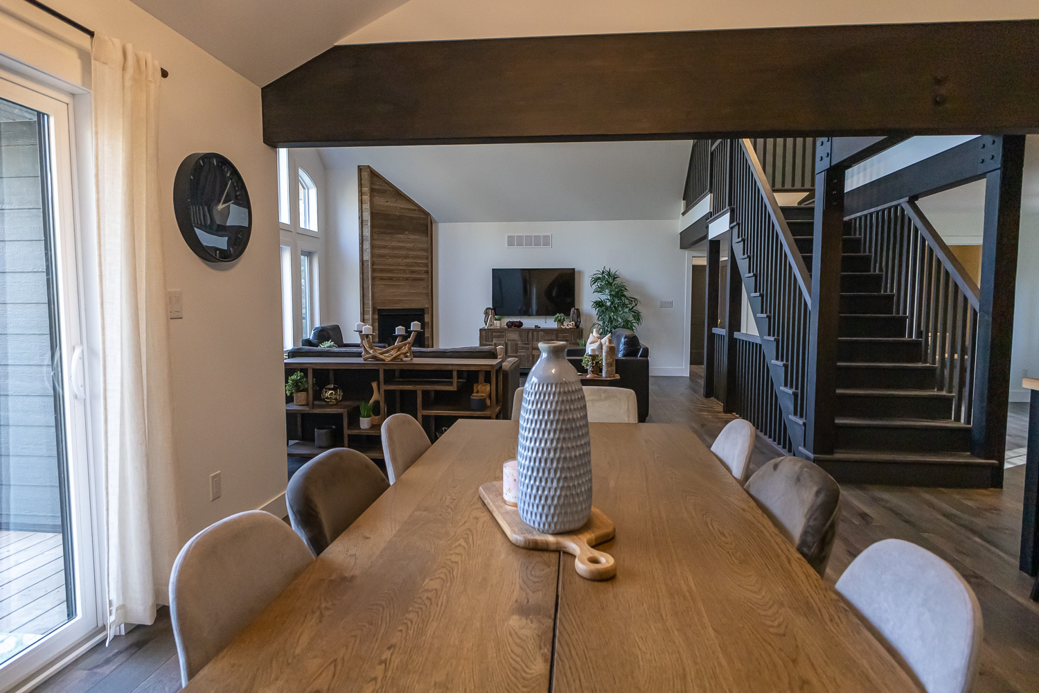 Inside, the home blends modern comfort with warm, inviting spaces. The main level is anchored by a beautifully designed kitchen, dining, and living area—ideal for gathering, entertaining, or simply unwinding after a day outdoors. A Muskoka room provides a quiet, screened-in space to enjoy morning coffee or evening sunsets, while expansive windows draw the outdoors in.