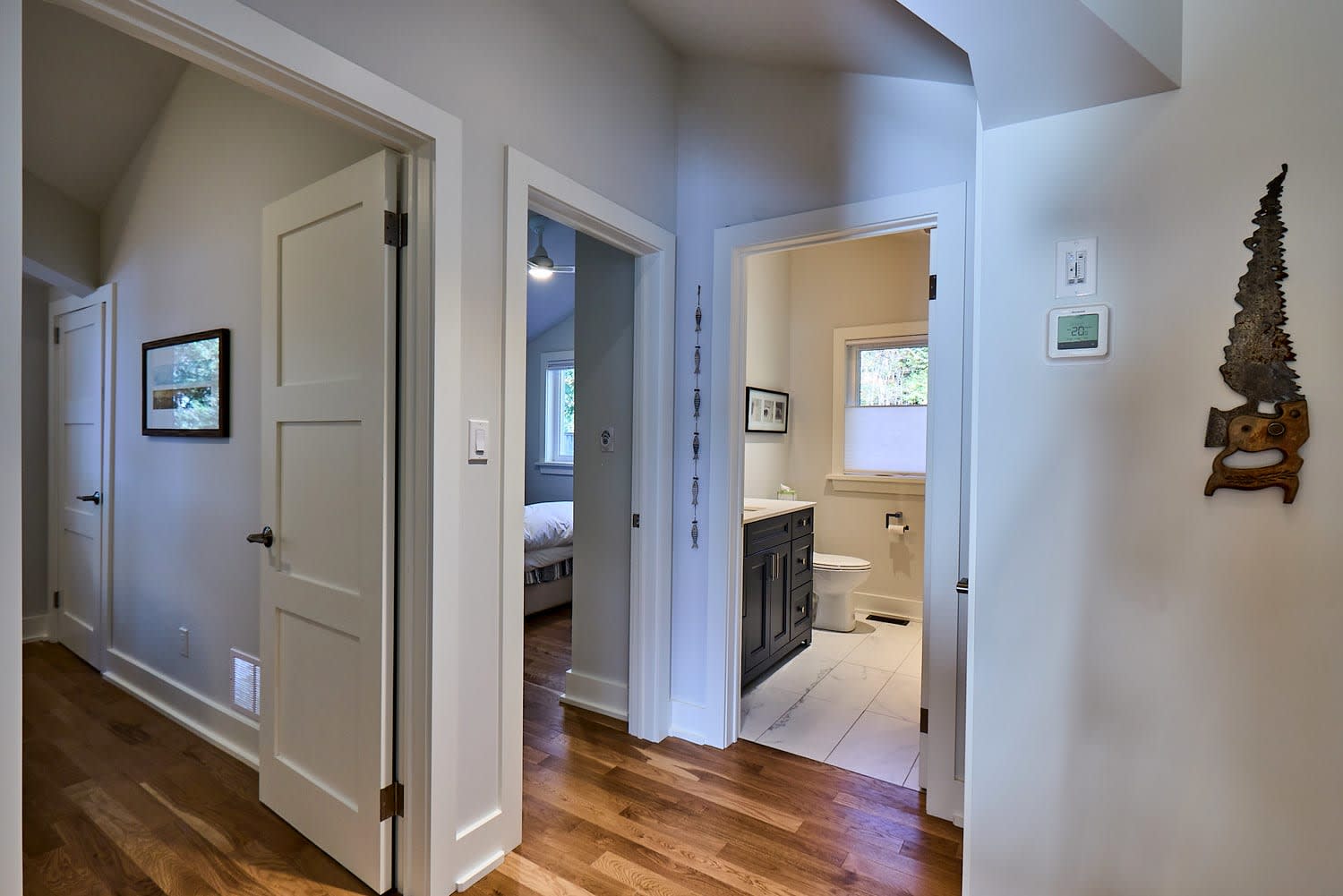 The primary bedroom is a private retreat, complete with a spa-inspired ensuite featuring heated floors and its own walkout to a quiet deck—ideal for morning coffee or evening unwinding. Additional bedrooms offer comfortable accommodations for family and guests, while a charming lakeside bunkie provides a fun and private space for kids or visiting friends.
