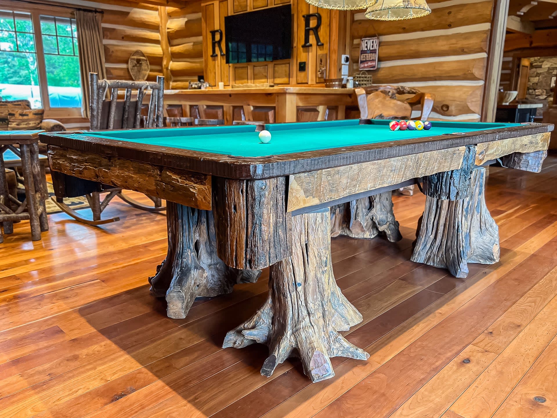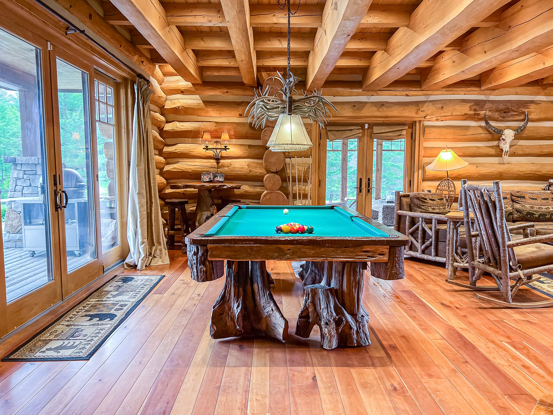 The layout is built for both entertaining and extended stays, featuring multiple bedrooms, generous gathering spaces, and a fully equipped chef’s kitchen. A dedicated games room with pool table, bar, and lounge area creates a private entertainment experience, while a bright sunroom offers a quieter space to unwind.