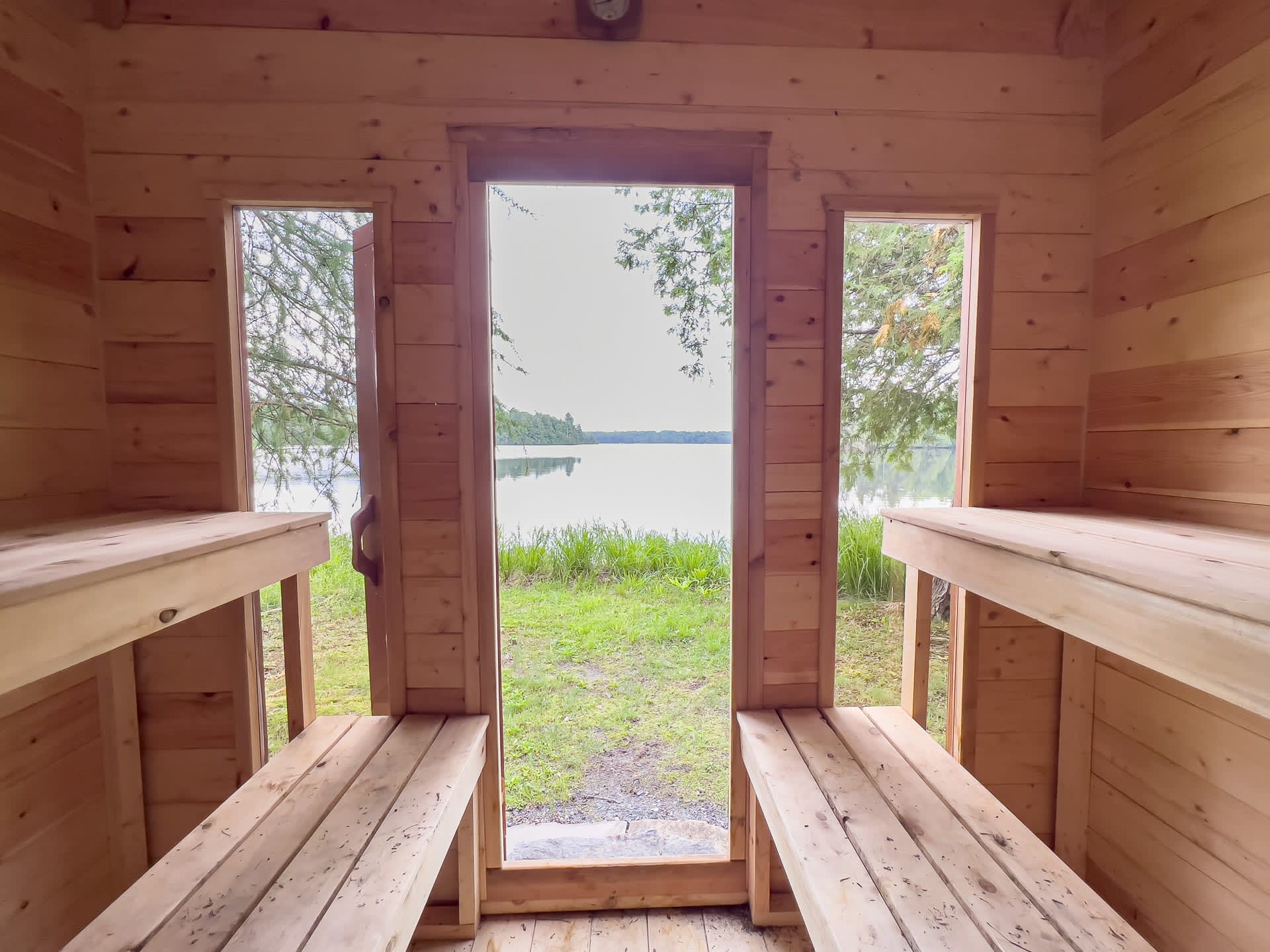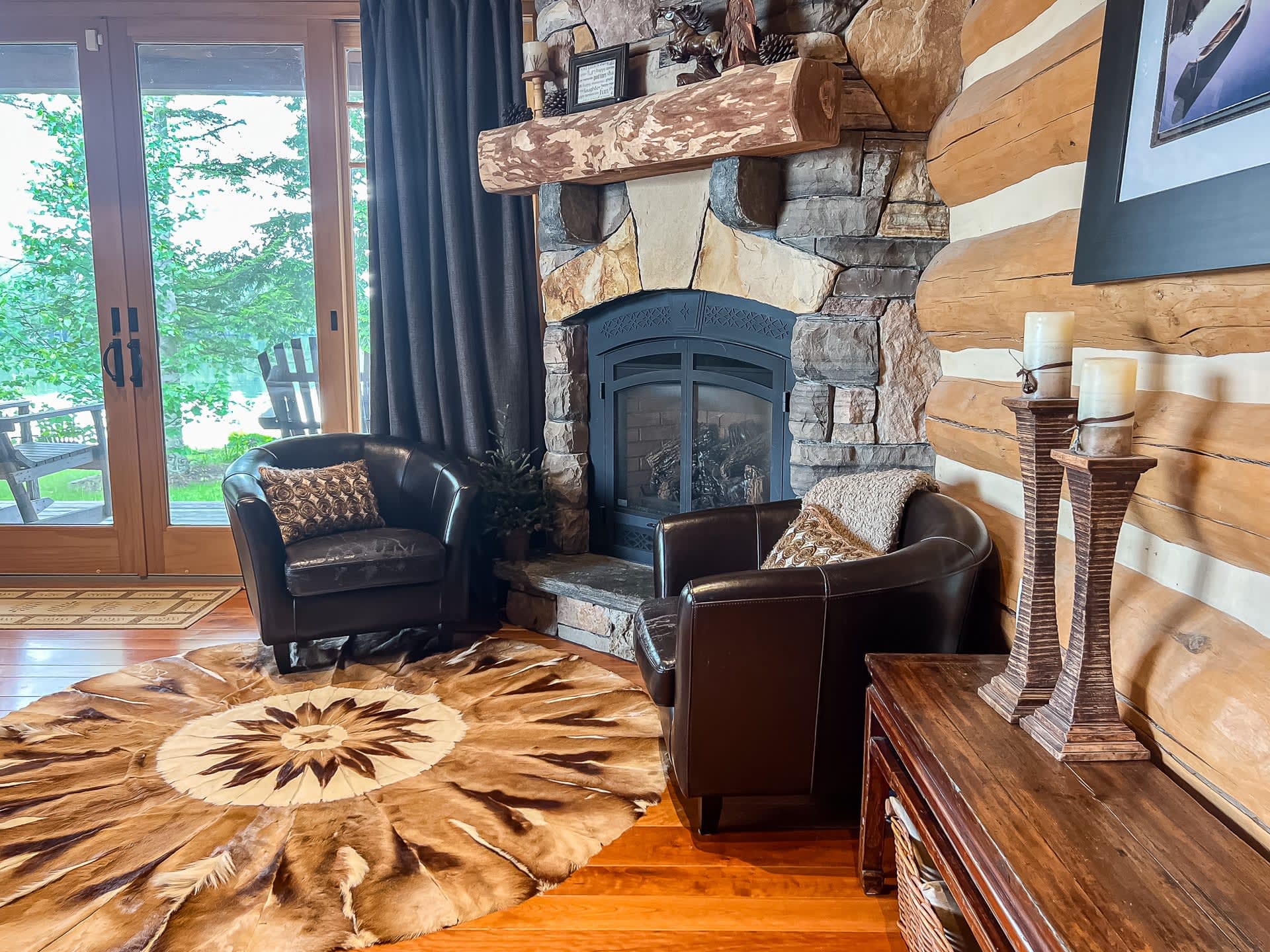 Spend your days boating across quiet waters, fishing for lake trout and bass, or simply enjoying the stillness of a private peninsula setting. In the evenings, gather around the fire, entertain guests, or unwind in a setting that feels entirely your own.