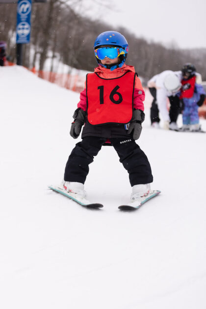 Have kids try on their base layers, socks, snow pants, and jackets a few times before hitting the slopes, why not even gamify it and see who can do it the fastest? Practice putting on boots with smooth socks (no wrinkles!) and let them walk around indoors. A few laps in ski boots can make the first day feel much easier.